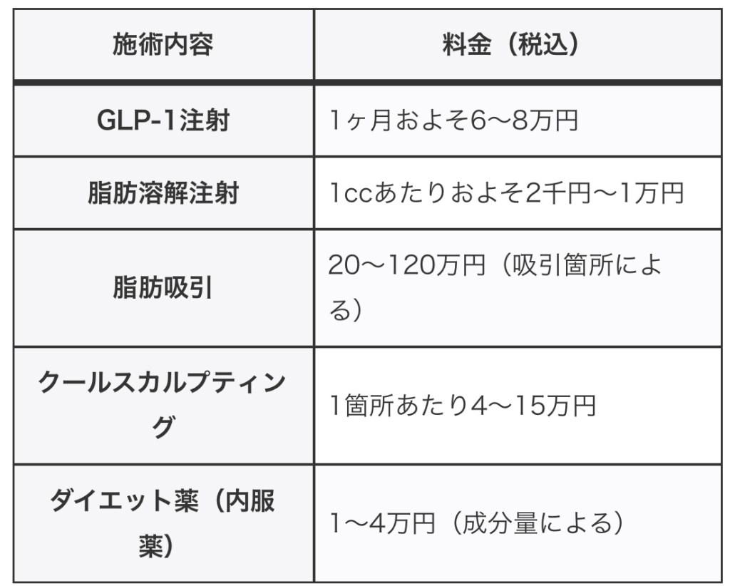 GLP-1注射など、さまざまな治療法を組み合わせて個別にカスタマイズされたプランを提供しており、効果を実感している患者が多いです。特に部分痩せに効果があるとの声もあります