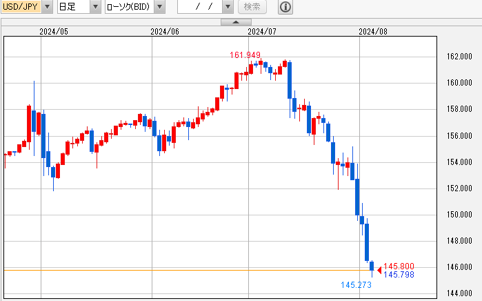 政府と日銀が引き金を引いた事は、間違いなく、米国さんは、反対に利下げを宣言してきていますので、さらなるドル円は、円高方向に向かうのでは?という予測です。
